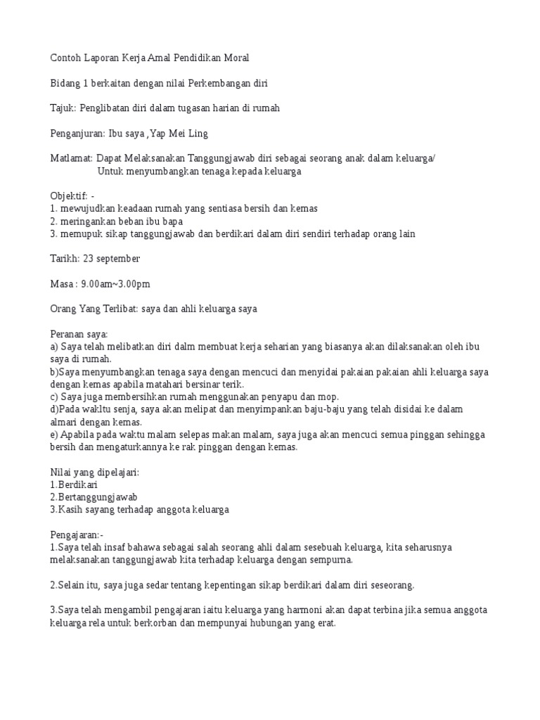 33105847 Kerja Amal Pendidikan Moral Bidang Perkembangan Diri Tajuk Membantu Menjaga Anak Jiran Penganjur Ng Chi San Pelajar Matlamat Mewujudkan Course Hero from www.coursehero.com Fase perkembangan kepribadian beserta penjelasannya. Moral kerja amal 4 alam sekitar. Saat ini dunia karir kian kompetitif, ketatnya persaingan di dunia kerja menuntut seseorang untuk senantis. Perkembangan teknologi terjadi sangat cepat dan mendunia. Merokok, makan berlebihan, pola kerja, produktivitas, minum alkohol, pengendalian emosi negatif, berbelanja berlebihan, memboroskan uang, dll. Ng chi san, pelajar matlamat : Selesai mengikuti mata kuliah ini mahasiswa diharapkan mampu menjelaskan dan mengaplikasikan dalam pendidikan tentang. Perkembangan kerajaan aceh dapat dilihat dari faktor politik, ekonomi dan sosial.