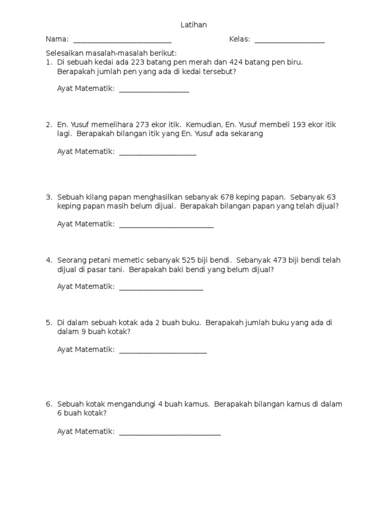 Terima kasih cikgu atas latihan matematik. Soalan matematik tahun 4 2016all software. Koleksi soalan dan latihan matematik tahun 3 jawapan. Berikut merupakan latihan matematik yang sesuai untuk murid prasekolah / tadika. Latihan tahun 2 these pictures of this page are about:latihan matematik tahun 2 darab.