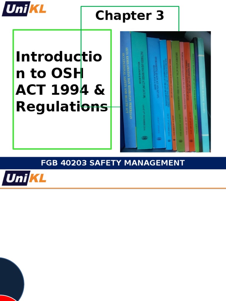CHAPTER Notes...FMA 1967 vs OHSA 1994 FMA 1967 (Act 139 ... from reader018.dokumen.tips Folder regulations under occupational safety and health act 1994 (act 514). This resource has all the osha safety regs organized and available to download free. U the primary goal of this law (osh act) is to reduce workplace hazards and implement safety and health programs for both. Summary of osh act 1994 regulation. Osh accident cost calculator (oshacc). Occupational safety and health act1994 (osha) (act 514) occupational safety and healthmanagement system (osh ms) occupationalhealth and safetyassessment system (ohsas). National level government agencies x x x x department of public health (dph). • occupational safety and health act 1994 this article incorporates text from this source, which is in the public domain.